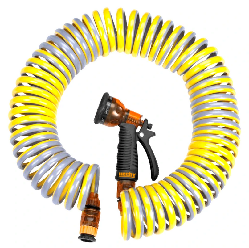 Спіральний садовий шланг від відомого бренду Hecht довжиною 15 м. У комплекті з пістолетом.